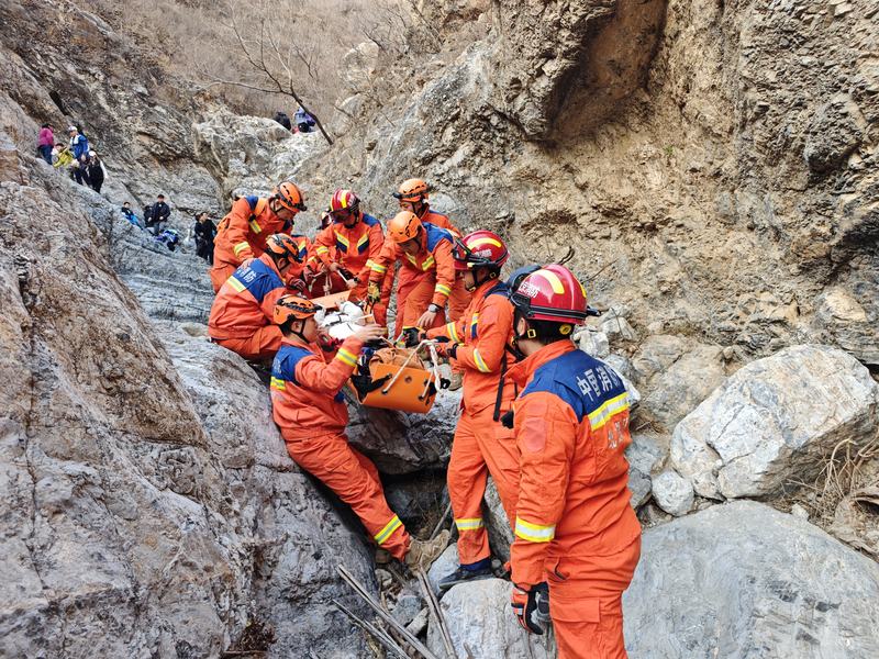 新京报讯(记者 张静书)11月23日10时54分,北京市门特沟区斋堂消防救援站接到报警。盐池镇朱窝村北2.5公里处,一名女子下山时不慎坠落受伤。他急需救援。斋塘消防救援站和盐池小消防站一起赶赴现场。据了解,被困者与打电话的人是母女。早上八点左右,他们爬上了山。幸好两名路过登山者及时赶来救援,将他扶至安全地点等待救援。 11时44分,斋塘消防救援站、盐池小消防站抵达山脚。根据报警人提供的信息,救援人员迅速勘察地形,形成第一条救援路线。 12时02分,救援队携带担架、绳索等设备前往山上进行搜救。旅程相当艰难由于游客众多,山路崎岖,出行十分困难。经过约一个小时的步行,救援人员于12时59分成功找到被困男子,并立即对其伤情进行评估。为了防止二次伤害,救援人员用树枝固定住受伤的脚踝,然后小心地将他转移到担架上。考虑到山上可能存在颠簸,救援人员毫不犹豫地脱下外套,垫在伤者头下以增加缓冲。救援人员用树枝固定伤者的脚踝,然后小心翼翼地将他抬到山上。莫凑沟消防供图 山路充满挑战,到处都是碎石,路面崎岖不平,路面高差很多,高达2米至4米,这给担架的移动带来了极大的挑战。救援人员齐心协力,在陡峭的道路上采用接力方式,一寸一寸地安全运送。救援人员冷静行走并规范动作他们用自己的身体作为屏障,在陡峭的斜坡和岩石之间开辟出一条“平滑的道路”。 16时06分,经过约4小时、往返5公里的艰难路程,救援人员成功将被困男子安全护送到山上,并将其家人送往医院进一步救治。编辑YangHi 校对李丽君